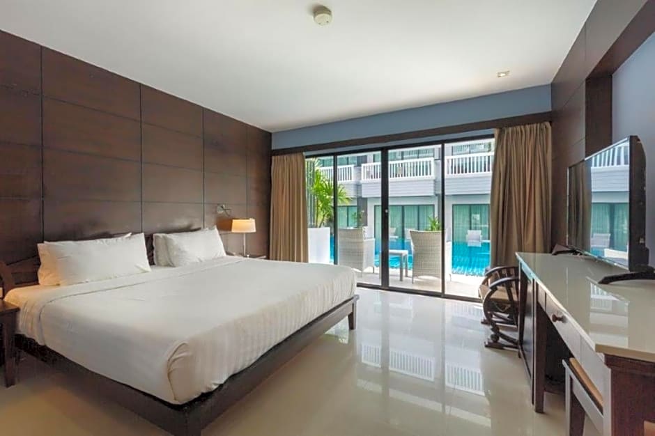 Room features direct access to the swimming pool.